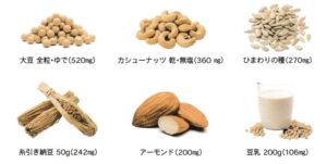 - 「マグネシウム」を多く含む食材は、